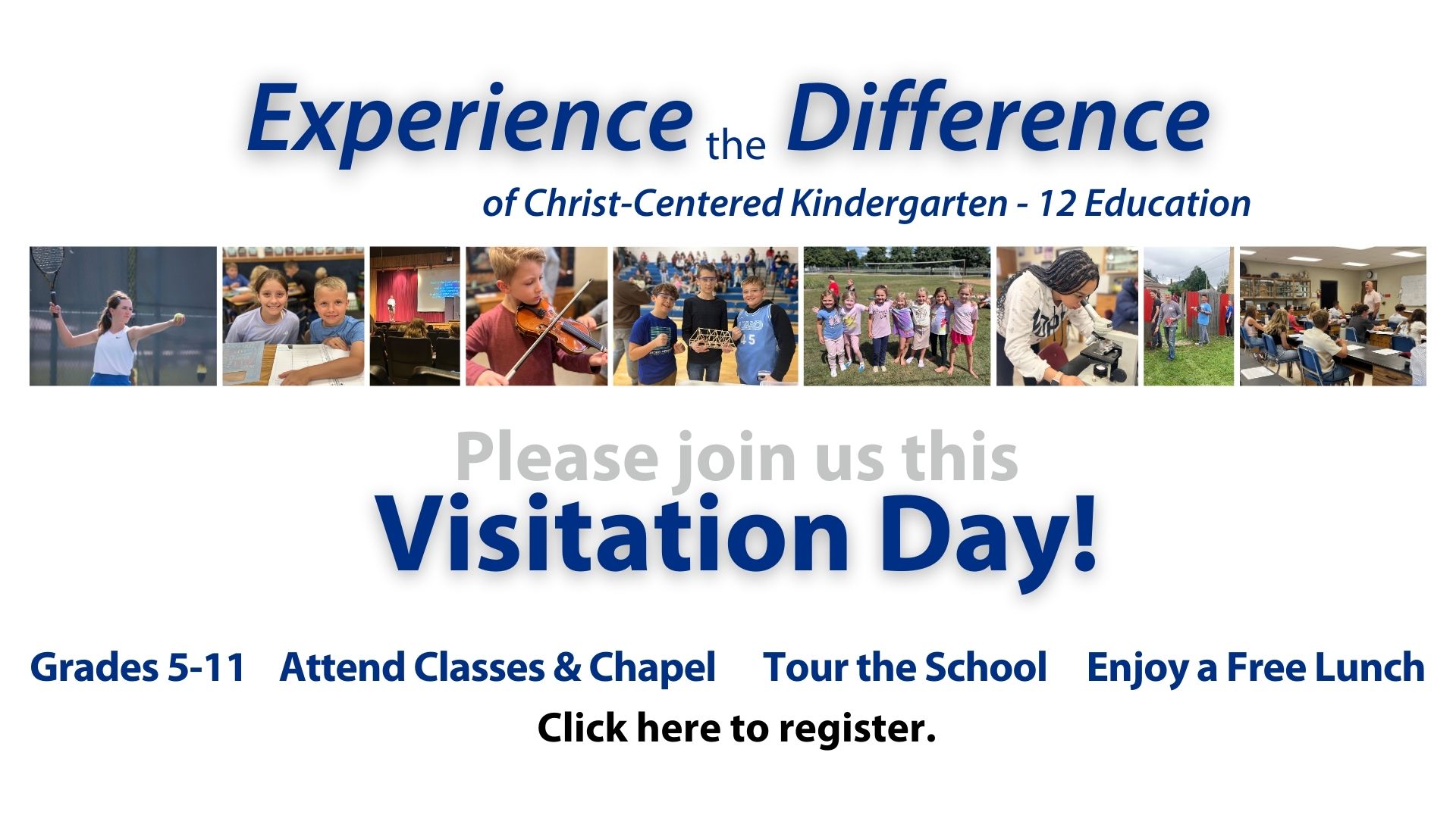 Interested in a Christ-centered education for your child? Students in grades 5-11 are invited to join us on Friday, October 17, 2025 or Friday, Februrary 20, 2026 from 9:15am-2:15pm for Central Christian School’s Visitation Days!